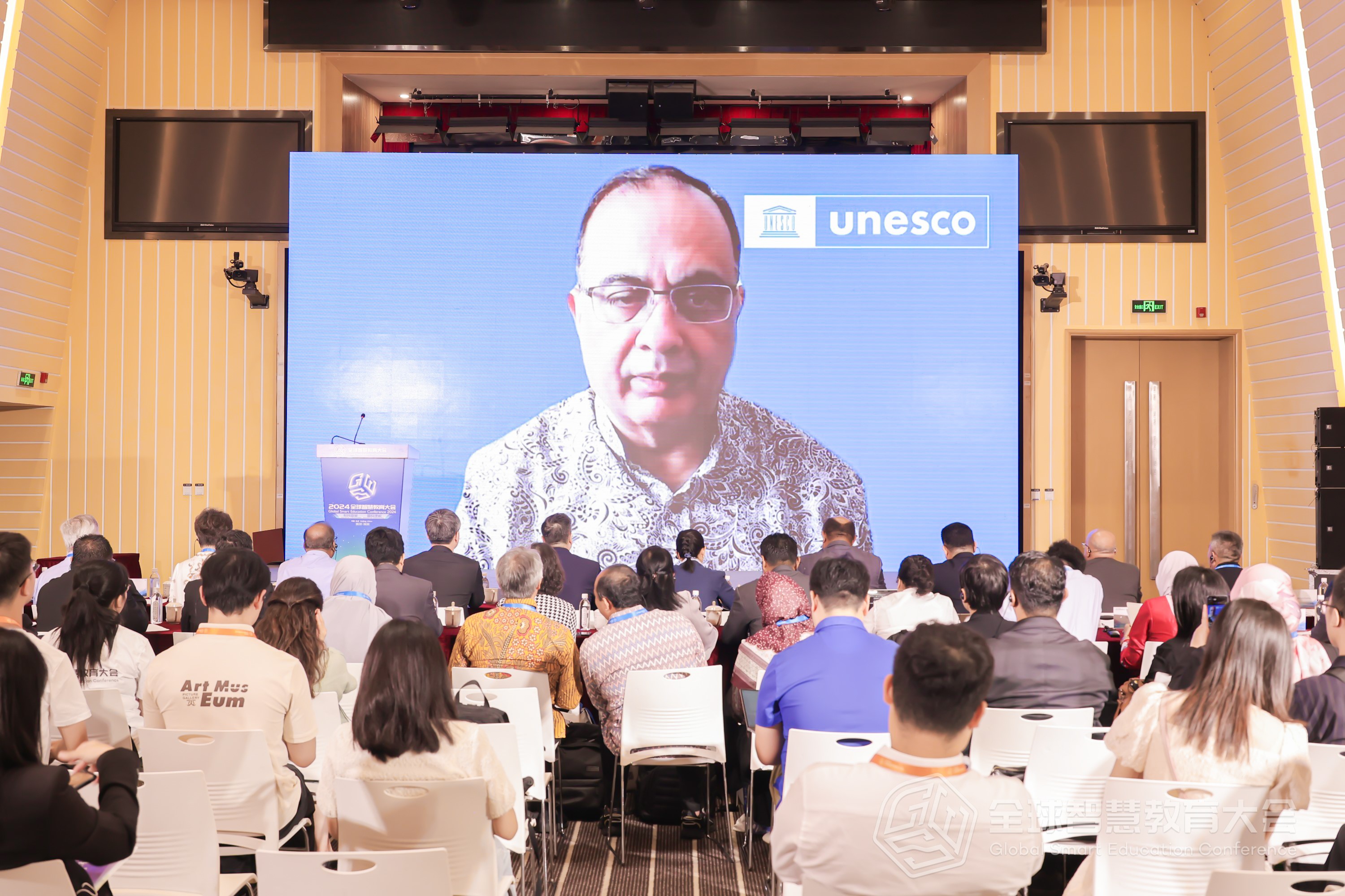 在主旨演講環節,瑞典斯德哥爾摩大學榮休教授、“數字時代的學習型鄉村”項目專家Vinayagum Chinapah在對有關政策與實踐進行回顧的基礎上,呼吁應該推動建設“數字時代的學習型鄉村”,基于農村地區實際需求,切實以人為中心,通過技術提升教育質量,整合資源并在農村可持續性地推進相關事業。聯合國教科文組織曼谷地區辦教育處處長汪利兵強調了技術與職業教育與培訓在農村轉型中的關鍵作用,并強調通過與綠色轉型相結合,促進發展中國家農村地區的社會和經濟增長。西北師范大學教育技術學院院長郭炯教授主要針對數字技術賦能城鄉教育資源均衡配置路徑展開主題報告。