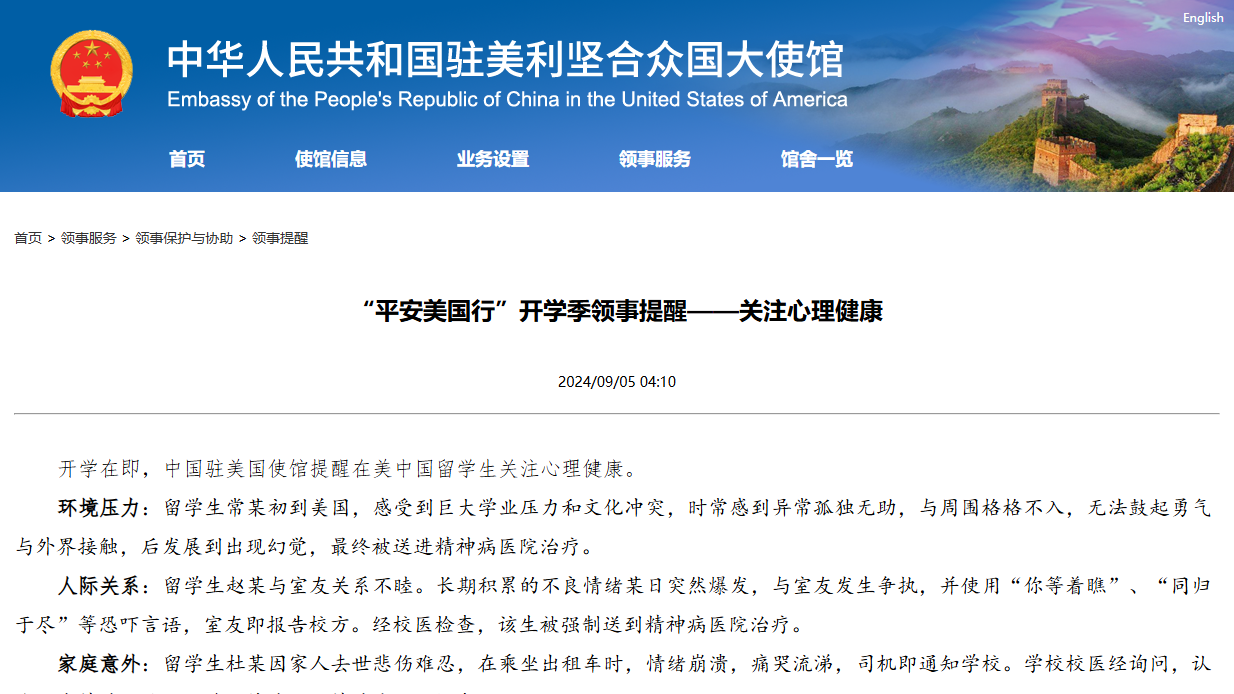 駐美使館提醒在美中國留學生注意租房、換匯風險