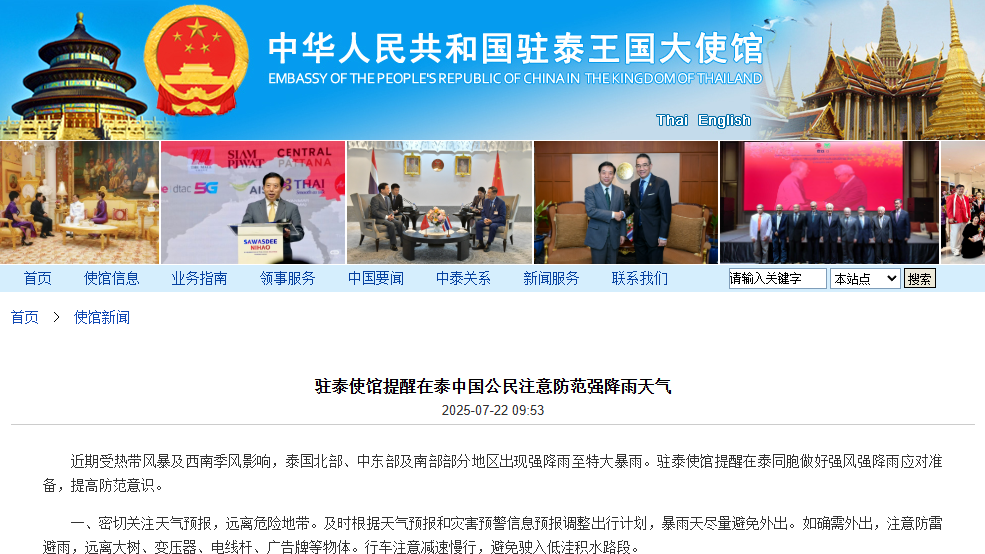 駐泰使館提醒在泰同胞做好強風強降雨應對準備,提高防范意識。