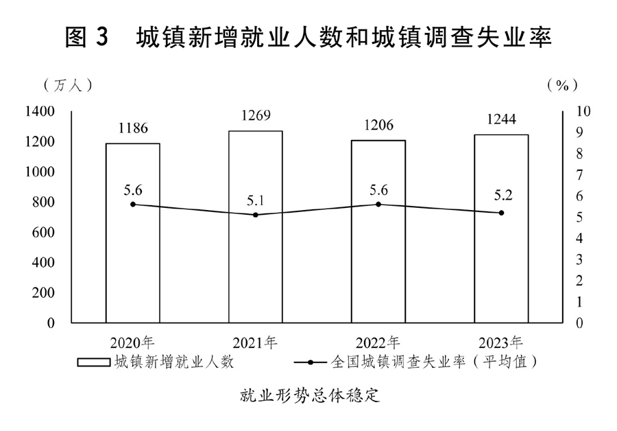 ??——城鎮新增就業1200萬人以上,全國城鎮調查失業率5.5%左右。關于城鎮新增就業:主要考慮是,2024年新成長勞動力規模仍然較大,農村勞動力轉移等就業結構調整也需要新的就業崗位,城鎮新增就業目標由2023年的“1200萬人左右”調整為2024年的“1200萬人以上”,既是穩就業、調結構、增信心的客觀要求,又體現了穩就業工作的力度和決心。關于城鎮調查失業率:主要考慮是,在2024年經濟運行風險挑戰增多、重點人群就業壓力較大的情況下,將預期目標穩定在5.5%左右,體現了就業優先的政策導向。