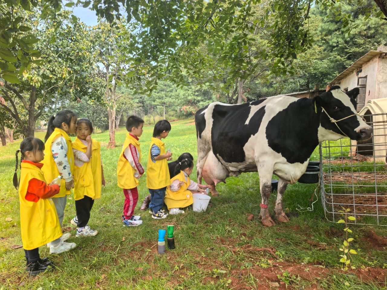此外,為了增加營收,白郁倩根據自己參與過研學團的經驗,實際了解當地的幾個研學基地后,打開了養殖場發展的另一扇大門?!把袑W對于學生們來說是第二課堂,大家每天都喝牛奶,可是對奶牛并不怎么了解。我們找好了場地,聘請了專業的研學團隊開發相關課程和項目,帶領學生們親身體驗奶牛養殖、擠牛奶的過程?!卑子糍徽f道。
